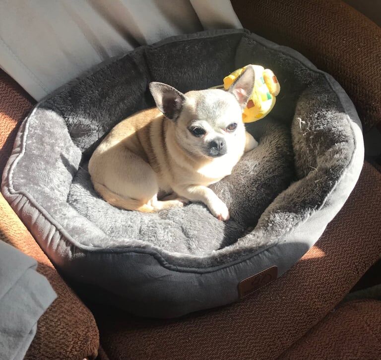 Tiny chihuahua x pug female approximately 7 years old. Reluctantly looking to rehome only if the right home comes up due to a house move and I now work long days. Friendly lap dog type and sleeps in my bed. Good with my 2 cats and older children. Walks well on the lead I tend to keep her on lead, she is reactive to other dogs typical small dog she will bark. Up to date with vaccines, unspayed, I would love to find her a home with someone looking for a lap dog and home most of the day. She would love a small enclosed garden and to be the only dog in the household. I am not in a rush and will only go to the best home, I will want to do home checks etcPrice is to ensure the right home