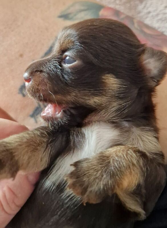 Beautiful litter of chihuahua cross jack russell puppies, both mum and dad can be seen and both are jack russell cross chihuahua, mum has more chihuahua gene. Reserve with a deposit and ready to leave 15th April after 1st vaccination and microchipPuppies in this litter